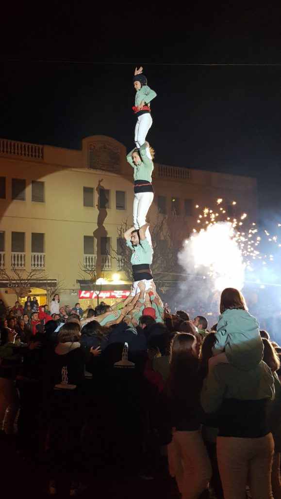 Vam aixecar un pilar de 4 en mig de la pirotècnia dels Diables i acompanyats per la música de Toc de Gralla, grup format per membres en actiu i ex-membres de la nostra colla.